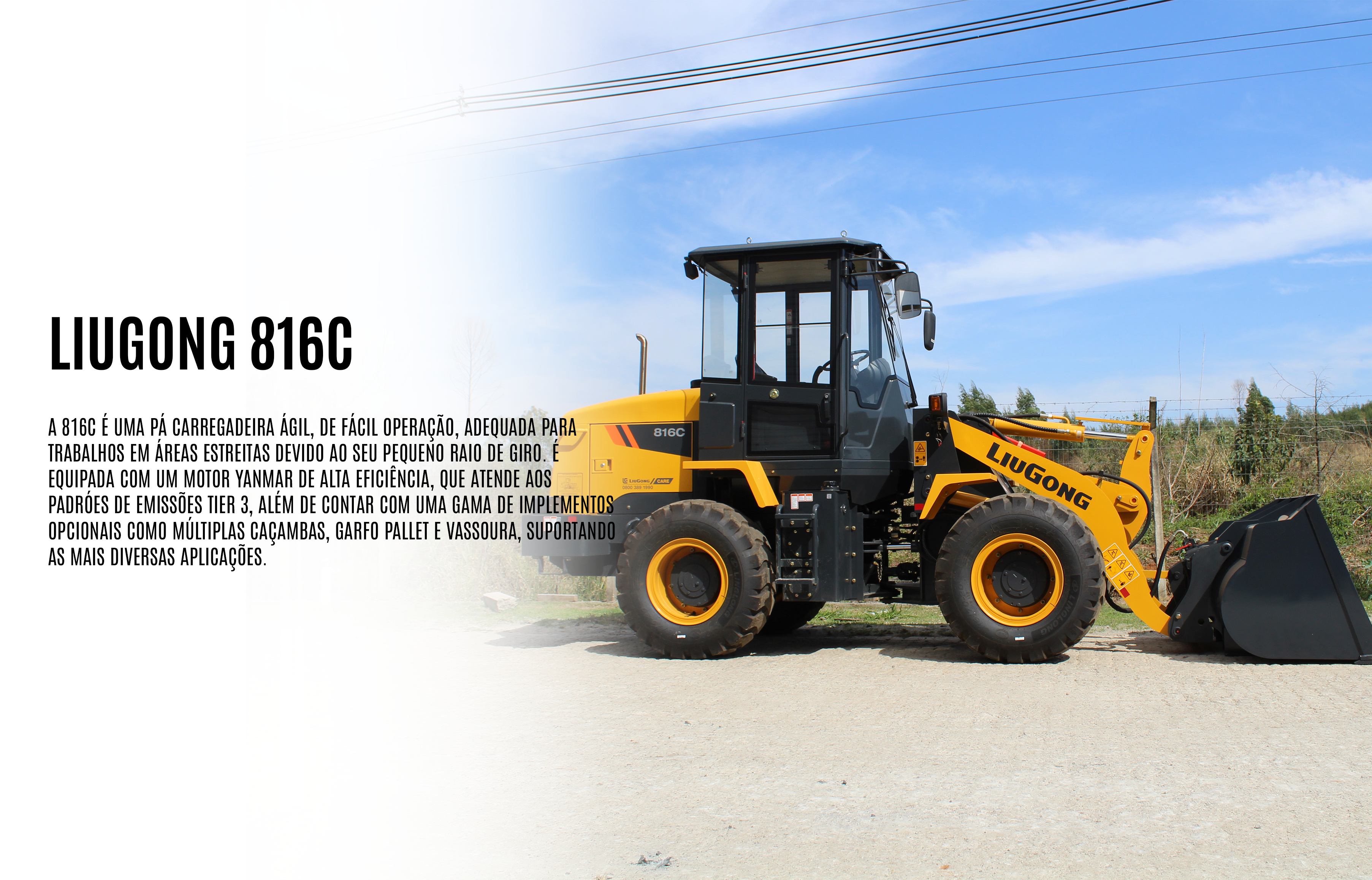 A 816C é uma pá carregadeira ágil, de fácil operação, adequada para trabalhos em áreas estreitas devido ao seu pequeno raio de giro.