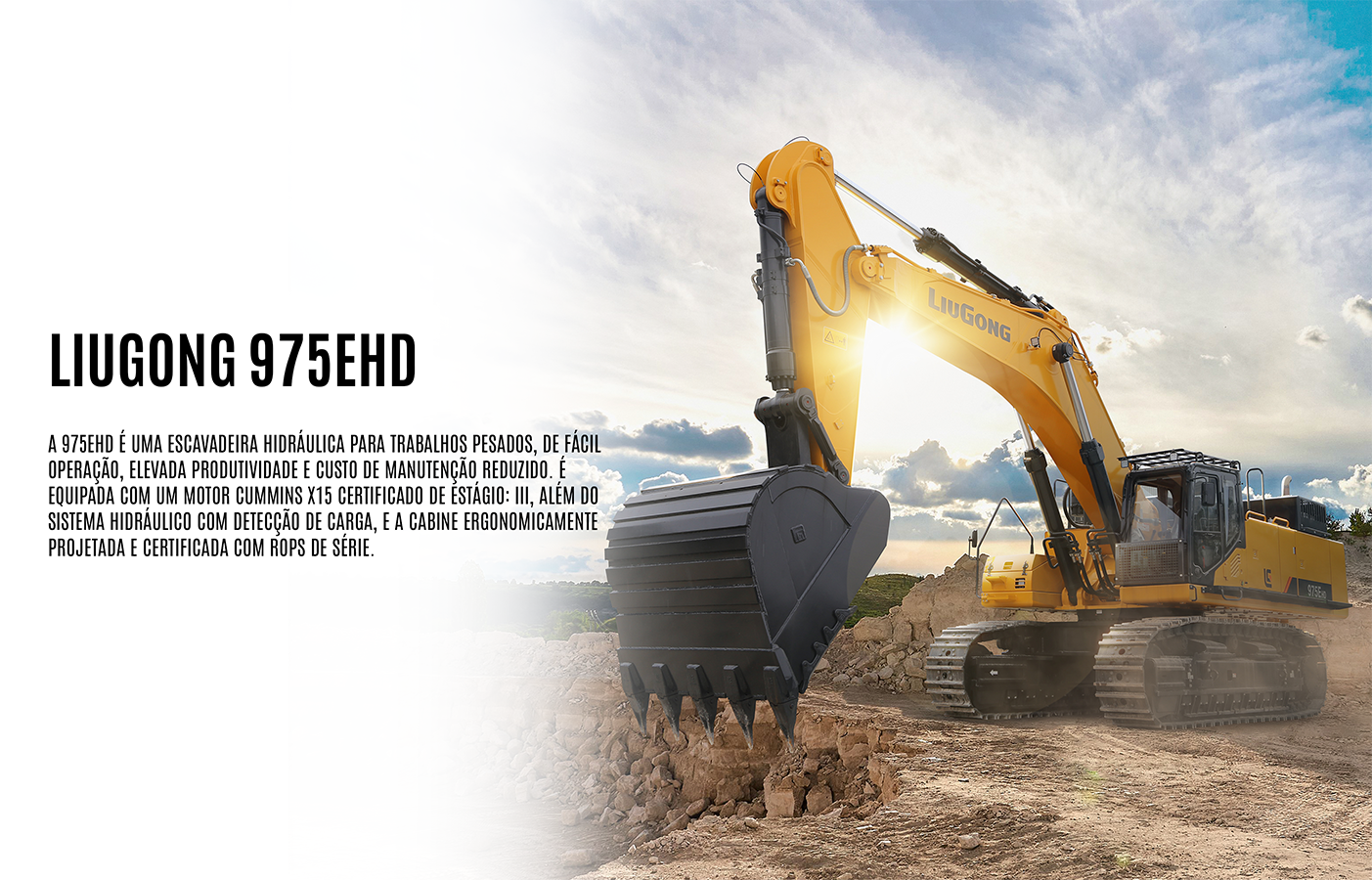 A 975EHD é uma escavadeira hidráulica para trabalhos pesados, de fácil operação, elevada produtividade e baixo custo de manutenção.
